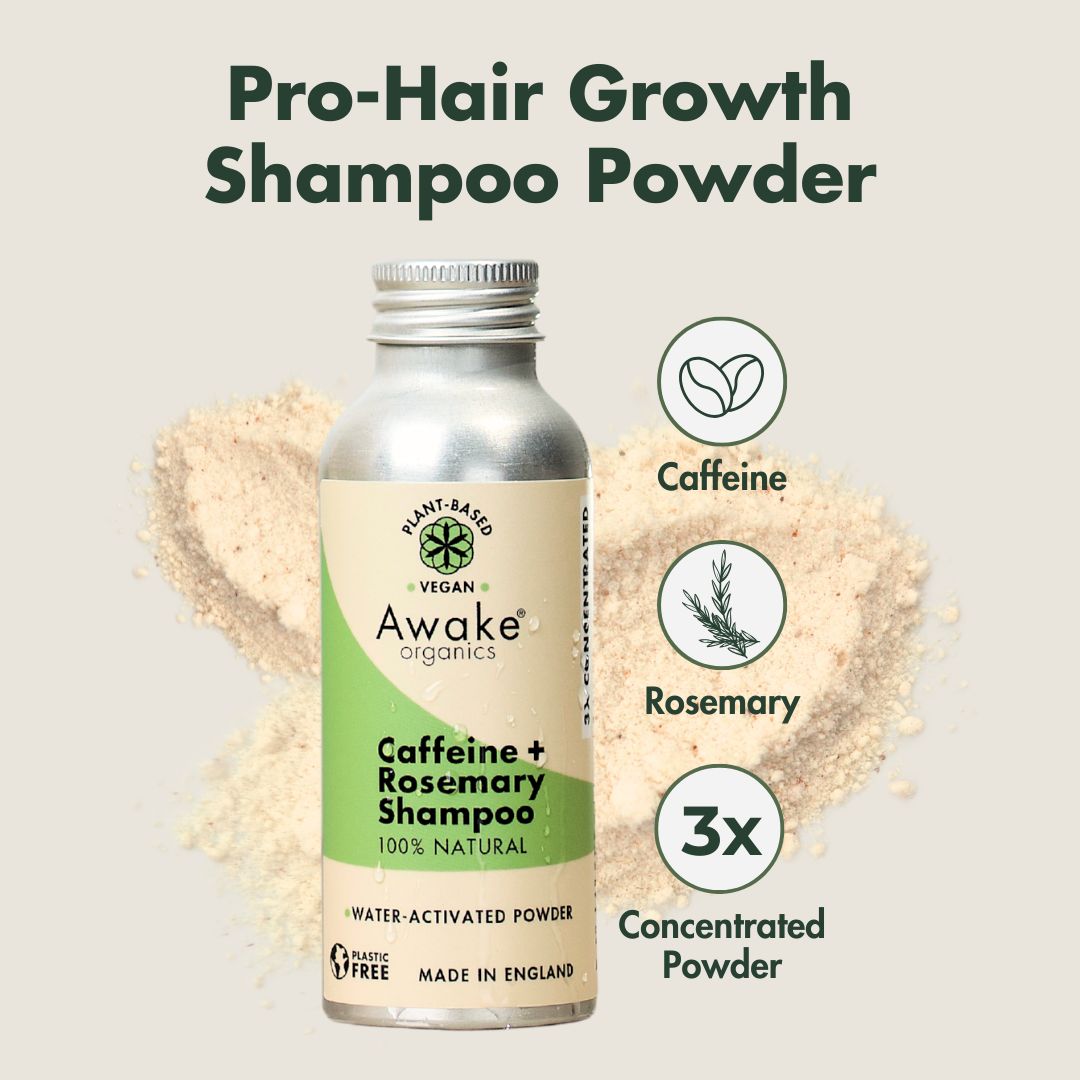 Discover our powerful Natural Shampoo Powder for Hair Growth: a 3x concentrated formula with Caffeine and Rosemary.