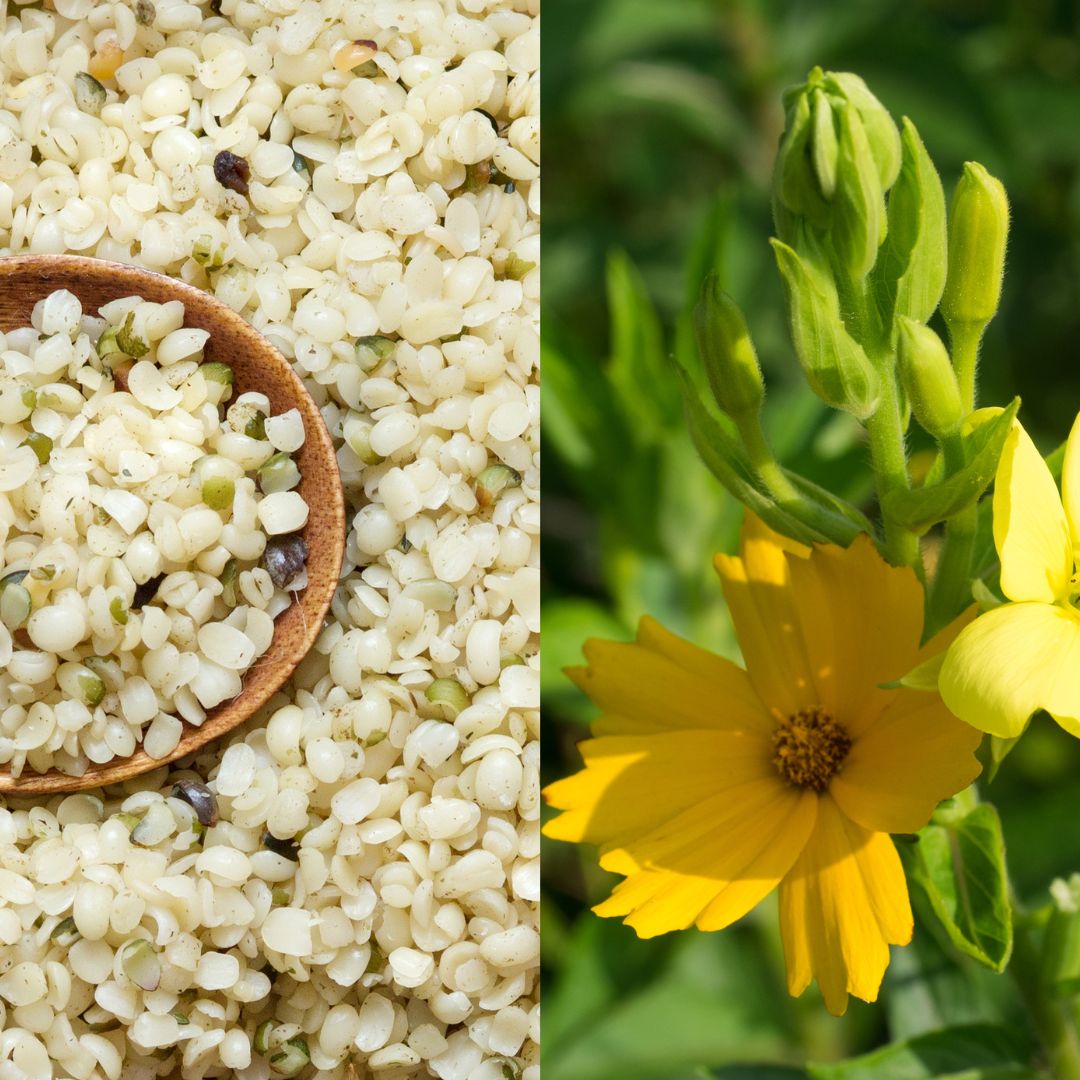Hemp Seed oil helps your skin balance oil production, and is quickly assimilated by all skin types. It's high in Omega-6, Vitamins A , E and D, and contains trace minerals (Magnesium, Calcium and Phosphorus) that help your skin glow. Evening Primrose is a superstar when it comes to improving your complexion. This nourishing oil helps restore hydration levels, reduce the appearance of fine lines, and leaves your skin feeling replenished.