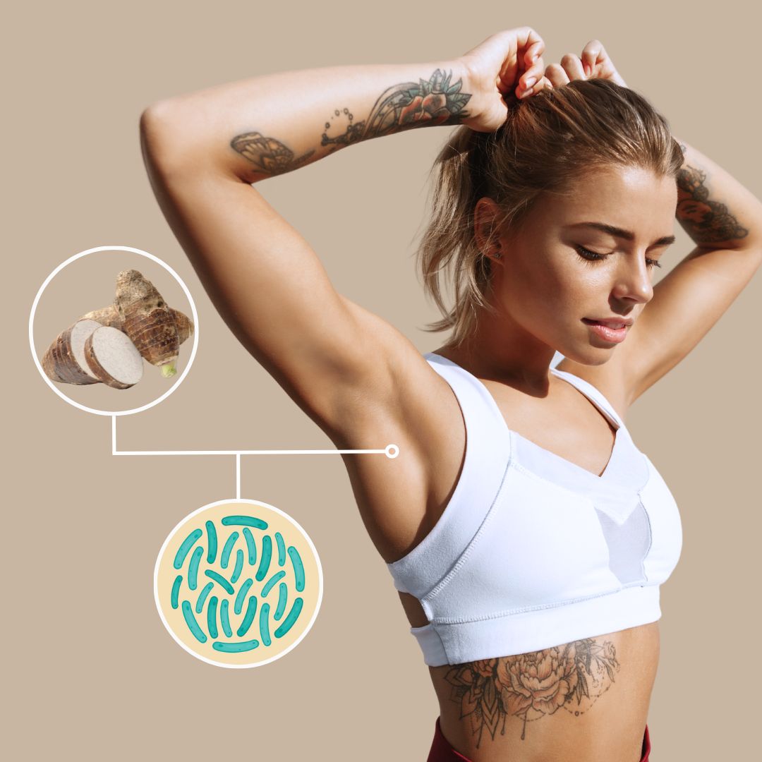 Made with prebiotic Arrowroot for your good bacteria, and fermented Lactobacilli (non-live, vegan probiotics). Together these ingredients create the right pH for your good bacteria to thrive, leaving you smelling fresh all day.