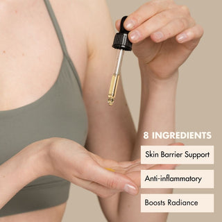 A minimalist, anti-inflammatory face oil for sensitive skin, free from common skin irritants, and fillers. Made with organically-grown British Chia, pure Argan and organic Castor seed oils to support and strengthen your skin barrier, so it feels comfortable and soft. Replenishes irritated, sensitive, and dry skin prone to redness, restoring a healthy glow and boosting hydration.