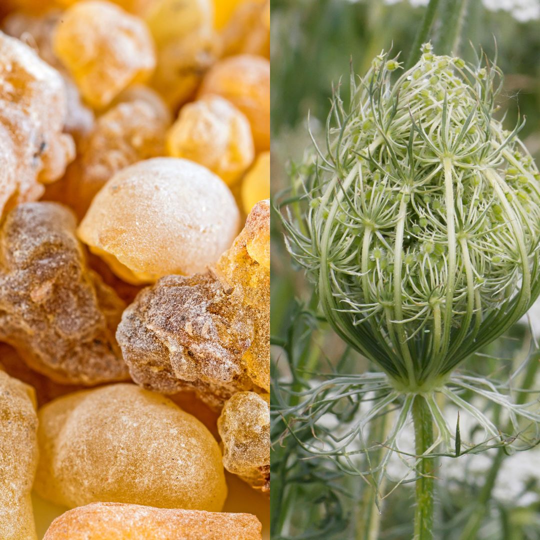 Widely considered the best essential oils for skin over 35, our Frankincense and Carrot Seed blend gives your skin a fresher, firmer appearance over time. We use the purest Frankincense on the planet: certified organic and wild-crafted. It helps fade the appearance of scars and dark spots, reduce the appearance of wrinkles, and generally tone and tighten the complexion because of its astringent properties. A brilliant oil for restoring the appearance of lacklustre skin. Carrot seed helps flush water build up from your skin, and is renown for improving the complexion.