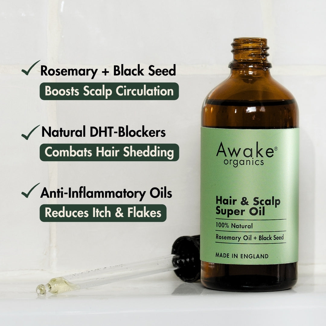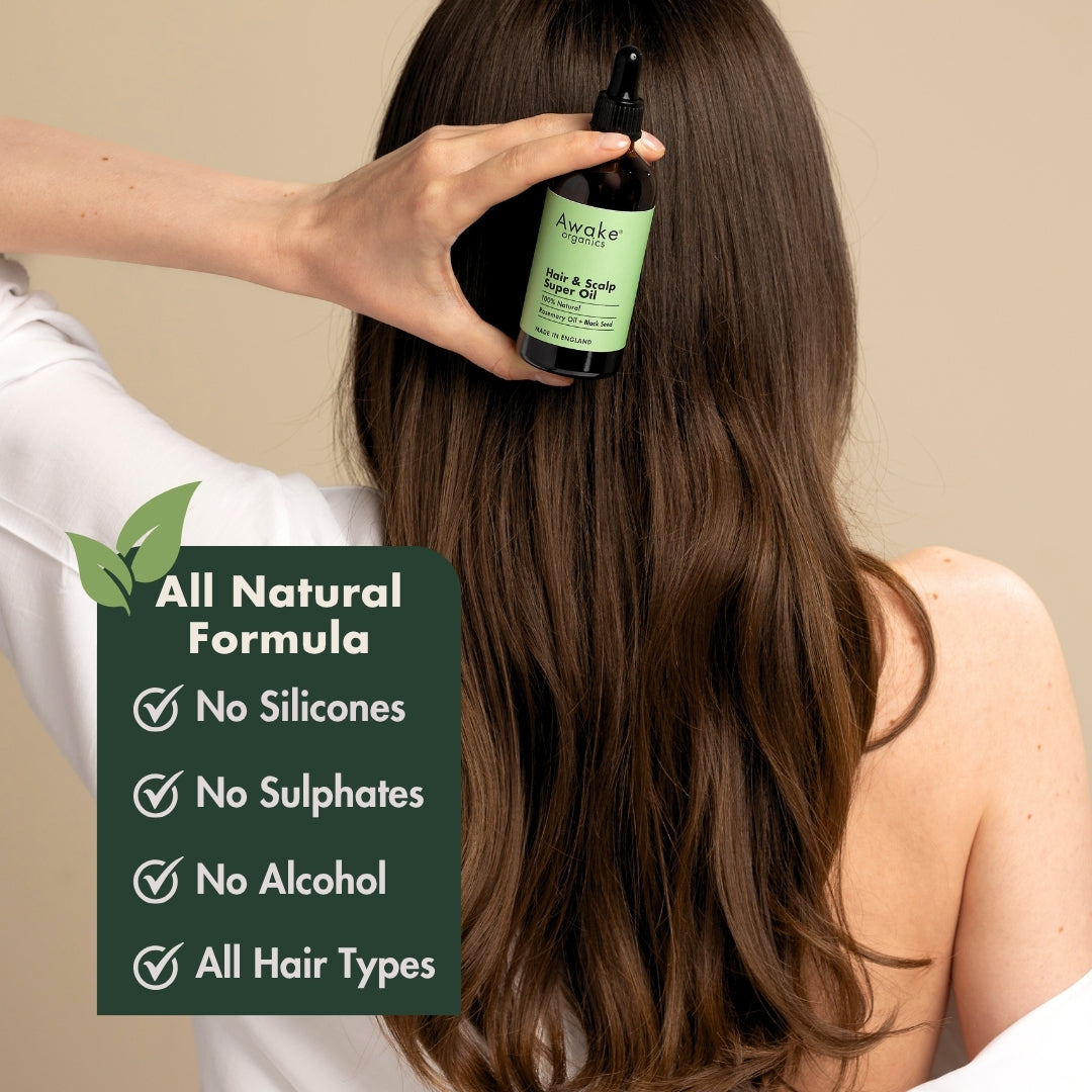 A balanced scalp is the foundation for thicker, stronger hair. Our Rosemary + Black Seed Hair and Scalp Super Oil combines twelve nutrient-rich natural oils to support hair growth, reduce hair shedding, and maintain scalp health.